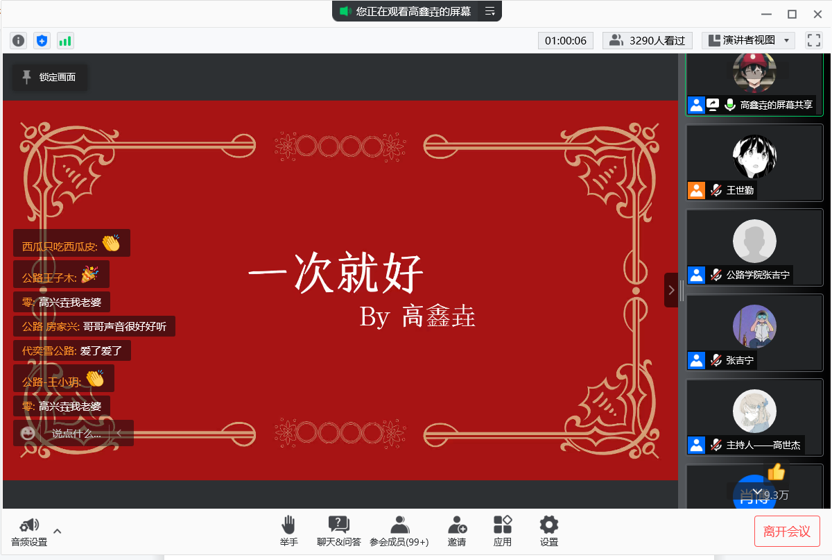 22点整,跨年演唱会在主持人的开场词中拉开帷幕,同学们热情高涨,纷纷在评论区留言点赞。二四得五乐队以一首弹唱歌曲《无人的海面》点燃了全场的气氛。杨博雅演唱《倒带》,赢得评论区满屏的“好听”留言。随后张琪瑞深情演唱《亲密爱人》,沈曾为大家带来吉他独奏《孤独的巡礼》,令观众沉醉其中。四首歌过后,备受观众期待的抽奖环节开始,同学们纷纷发送祝福弹幕参与其中,热度久久不散,在大家的热情中演唱会的下半部分开始。