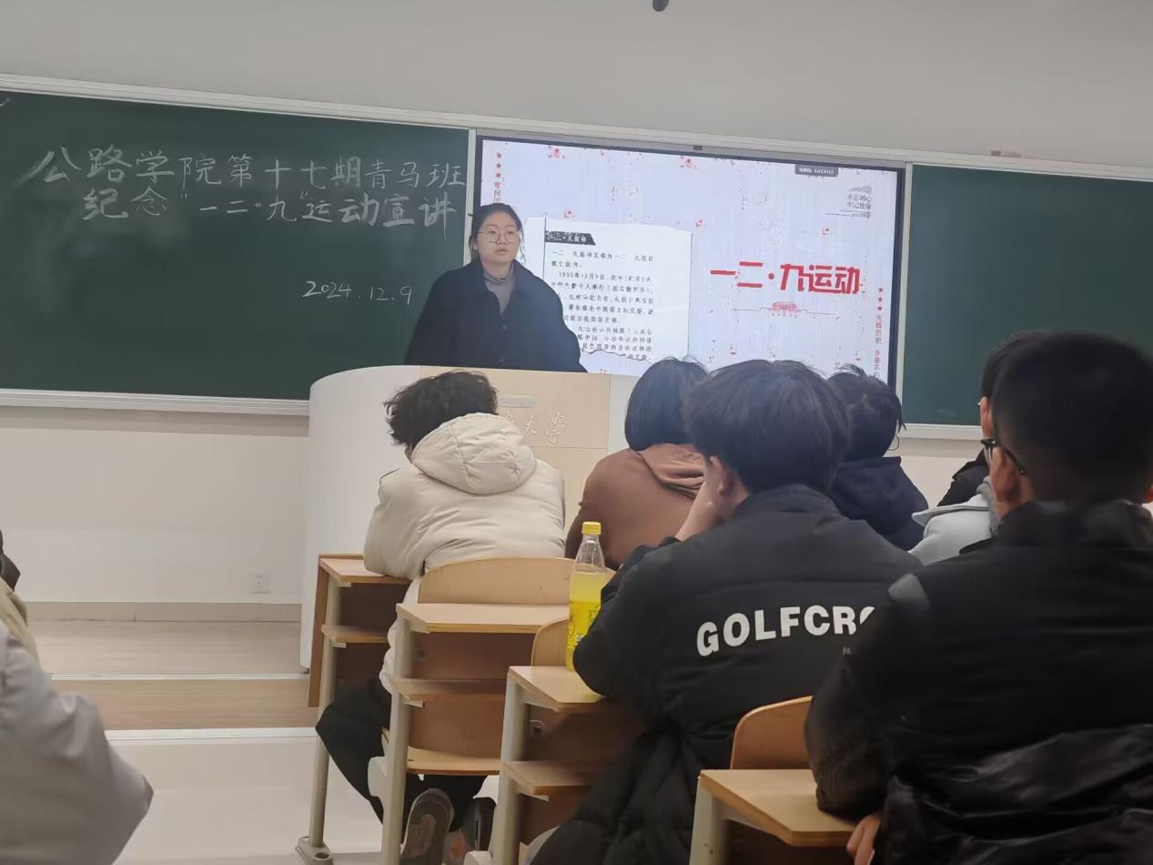 第十七期青马班纪念“一二·九”运动主题宣讲。2024级本科生辅导员何子毅以及青马班全体同学参加了此次宣讲。
