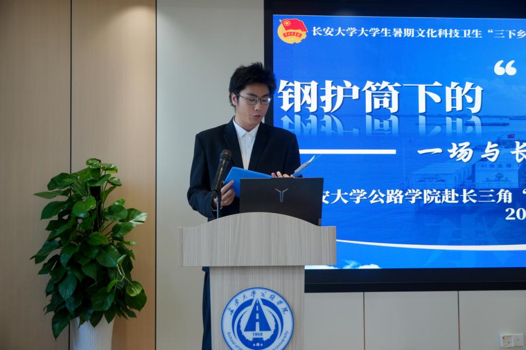 长安大学赴甘肃兰州“虹桥传薪·金城问道”暑期社会实践队肖梓文同学分享了他们通过无人机测量、方案比选等方式深入了解工程建设的经历。他认为,青年一代要走出课堂,走向祖国大地,将科技成果应用于实践,在一次次探索中不断磨砺自我,担当起建设交通强国的使命。