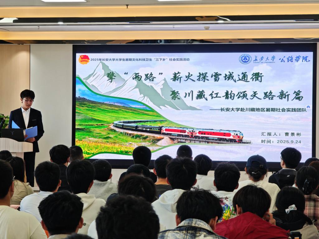 长安大学赴川藏地区“擎两路薪火探雪域通衢·聚川藏红韵颂天路新篇”暑期社会实践队曹景彬同学分享了重走川藏公路、解码“两路”精神的难忘经历。“两路”实践队赴成都、泸定、林芝、拉萨等地开展实践调研,围绕“两路”精神溯源、交通变迁见证、精神传承与弘扬三大主线,通过实地调研、人物访谈、与校友单位交流等多种形式开展实践,以青春之名践行使命担当,续写新时代“两路”新篇章。