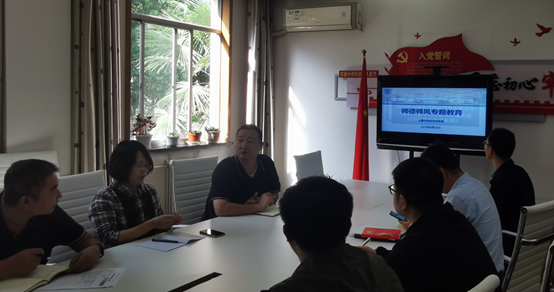 会上,学院党委副书记刘徐组织大家学习了《新时代高校教师职业行为十项准则》《长安大学关于加强和改进新时代师德师风建设的实施办法》《长安大学是的失范行为处理办法(修订)》等内容,并以教育部公开曝光的第十批7起违反教师职业行为十项准则典型案例为素材开展警示教育,以案释法,深入浅出地为支部全体教职工阐释了违反教师职业行为、酒驾醉驾、违规吃喝等违法违纪行为的危害,引导全体教师牢固树立底线意识,不断规范自身言行,弘扬新风正气,改进工作作风,切实增强遵守教师职业道德准则的思想自觉和行动自觉。